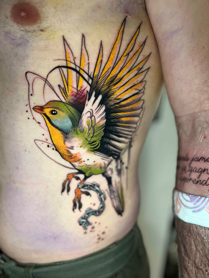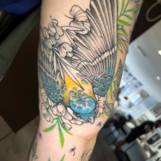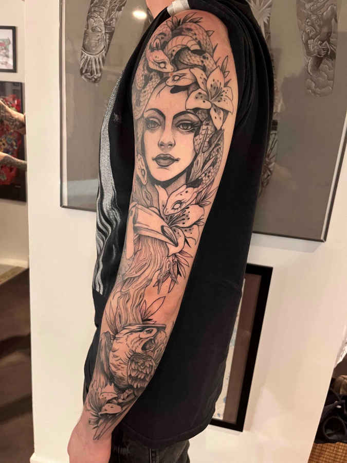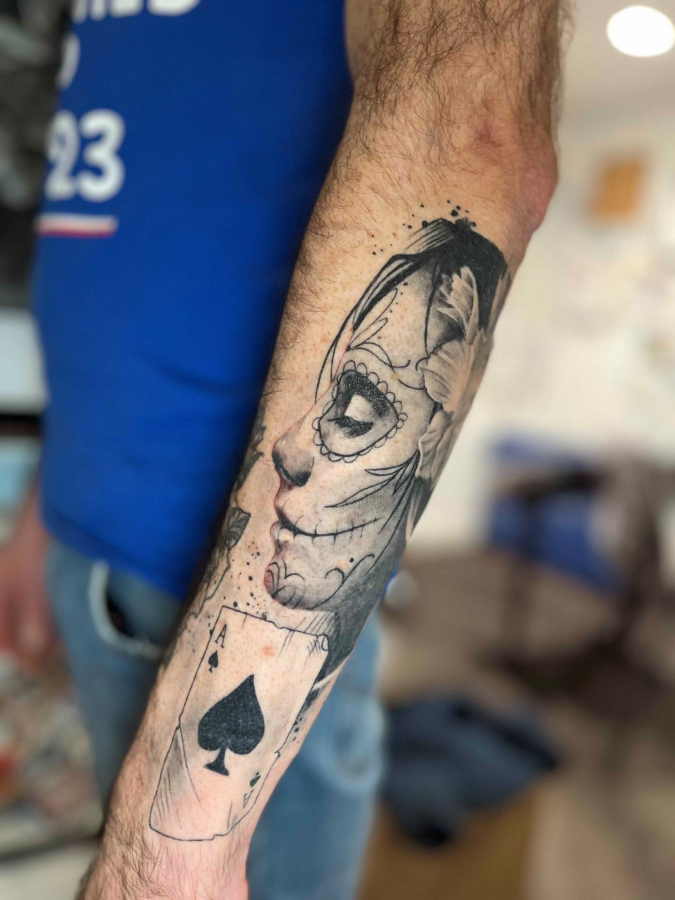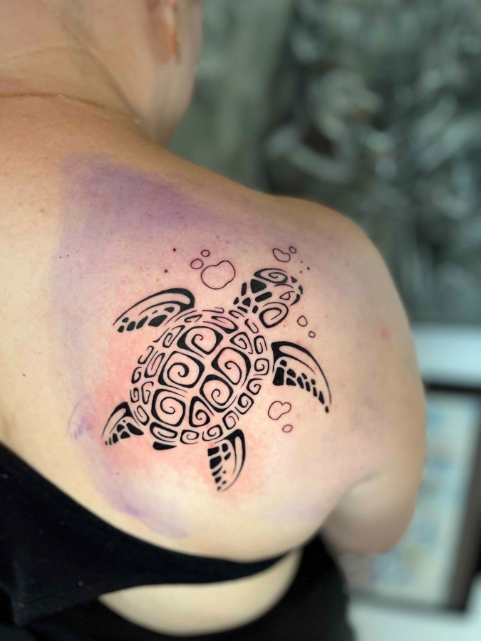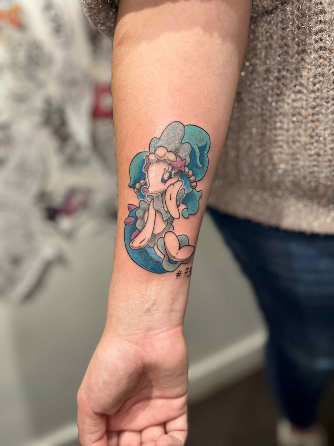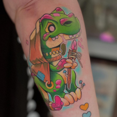 She got into tattooing after she'd lost a game of Pacman.